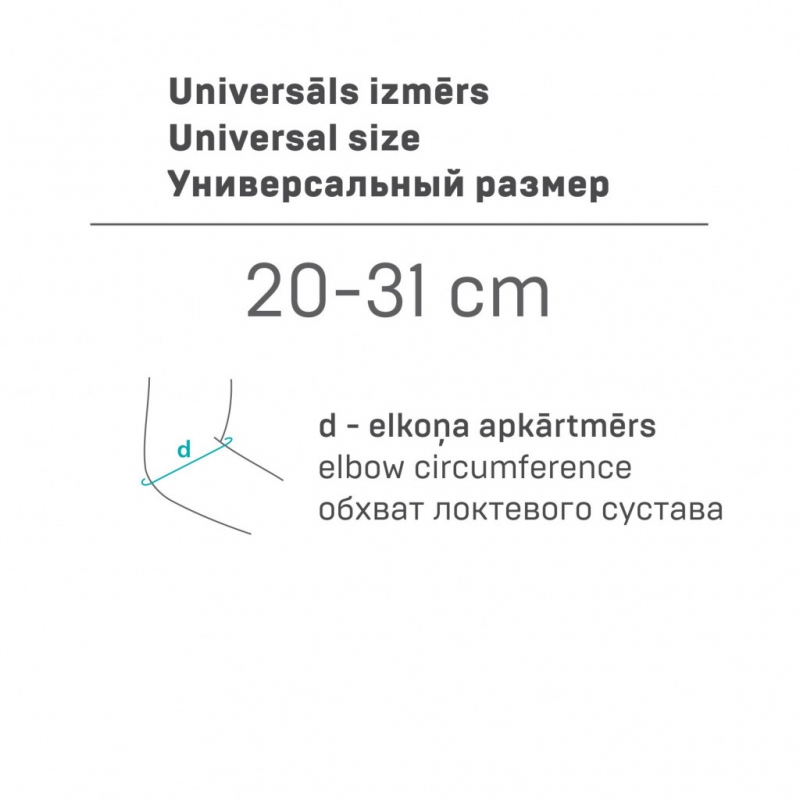 Elastinis neopreno tvarstis alkūnės sąnariui sutvirtinti, universalus, skirtas naudoti kaip profilaktinė priemonė raiščių aparatui ir sąnario minkštiesiems audiniams fiksuoti, apsaugoti ir palaikyti ramybės būklėje. Kontraindikacijos: individualus nesuderinamumas su gaminio medžiagos komponentais, ryškūs vietiniai odos susirgimai (naudoti specialisto priežiūroje).