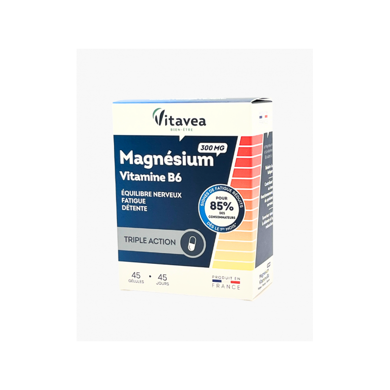 Magnis + vitaminas B6Trigubas poveikis●Nuovargiui sumažinti ●Energijai ●AtsipalaidavimuiAKTYVIOSIOS MEDŽIAGOS●Magnis padeda palaikyti normalią: raumenų funkciją, baltymų sintezę, kaulų ir dantų būklę. Padeda mažinti pavargimo jausmą ir nuovargį. Padeda palaikyti normalią nervų sistemos veiklą ir psichologinę funkciją, atlieka tam tikrą funkciją ląstelių dalijimosi procese.●Vitaminas B6 padeda palaikyti: normalų raudonųjų kraujo kūnelių susidarymą, normalią cisteino sintezę, normalią homocisteino apykaitą, normalią energijos apykaitą. Padeda palaikyti normalią nervų sistemos veiklą ir psichologinę funkciją, normalią imuninės sistemos veiklą. Padeda mažinti pavargimo jausmą ir nuovargį.1-oje kapsulėje:●Vitaminas B6 - 1,4 mg (100% RMV*)●Magnis - 300 mg (80% RMV*)*RMV referencinė maistinė vertė. Maisto papildas. 45 kapsulės. Grynasis kiekis 28,6 g.Gamintojas: Vitavea, 85612 Montaigu Cedex, PrancūzijGavėjas :