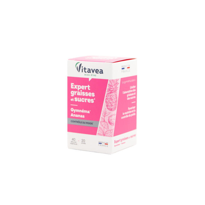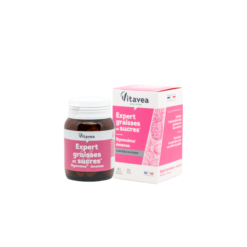 Tikras postūmis pasiekti savo svorio metimo tikslą!VITAVEA „Kovos su riebalais ir cukrumi ekspertas“ – tai maisto papildas, kurio sudėtyje yra pripažintų veikliųjų medžiagų, padedančių apriboti riebalų ir cukraus įsisavinimą, padedančių palaikyti svorio kontrolę - miškinės pokštenės (Gymnema) ir ananasų. Gymnema Indijoje yra vadinama „gurmar“, pažodžiui tai reiškia „kuris naikina cukrų“. Šis ekstraktas padeda palaikyti normalų cukraus kiekį kraujyje ir padeda kontroliuoti apetitą, padeda palaikyti riebalų apykaitą, taip dalyvaudamas riebalų pašalinime. Ananasų ekstrakte yra natūralaus virškinimo fermento bromelaino. Bromelainas yra proteolitinis fermentas (enzimas), kuris padeda skaidyti baltymus, todėl juos lengviau virškinti ir pašalinti iš organizmo.MAISTINĖS MEDŽIAGOS●Miškinės pokštenės (Gymnema) ekstraktas padeda sumažinti apetitą ir kontroliuoti svorį, padeda palaikyti riebalų apykaitą, padeda palaikyti normalų cukraus kiekį organizme.*●Bromelainas, išgautas iš ananasų ekstrakto, yra proteolitinis fermentas (enzimas), kuris padeda skaidyti baltymus.*Teiginiai apie sveikatingumą laukia ES patvirtinimo. 2-ose kapsulėse:●Miškinės pokštenės (Gymnema) ekstraktas: 400 mg;●Bromelainas (iš ananasų ekstrakto): 20 mg.Maisto papildas. 40 augalinės kilmės kapsulių. Grynasis kiekis 12,6 g.Gamintojas: Vitavea - Laboratoires Yves Ponroy, Parc d'activité Sud Loire - 85612 Montaigu Cedex, PrancūzijGavėjas :