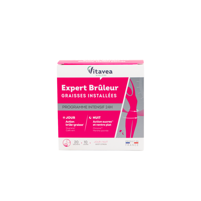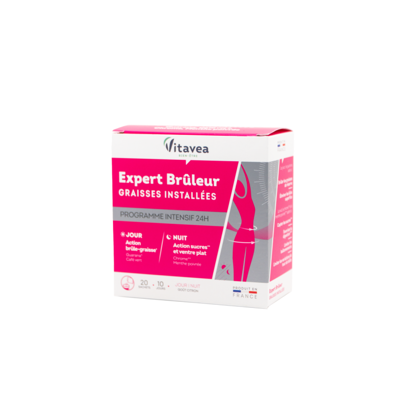 24 VALANDŲ INTENSYVI LIEKNĖJIMO PROGRAMAVITAVEA „Riebalų deginimo ekspertas“ yra maisto papildas, kurio dviguba formulė (dienos ir nakties) turi pripažintų veikliųjų medžiagų, užtikrinančių 24 valandų lieknėjimo efektyvumą: guaranos, žalios kavos, pipirmėčių ir chromo.Kombinuotas dienos ir nakties poveikis suteikia lieknėjimo, riebalų deginimo, plokščio pilvo ir sustiprinto svorio metimo efektą. Padeda pašalinti susikaupusius riebalus. ●Dvigubas poveikis: √ Dienos gėrimas - padeda deginti riebalus (guarana, žalia kava). √ Nakties gėrimas - padeda palaikyti normalią gliukozės koncentraciją kraujyje, padeda palaikyti virškinimą, apriboti pilvo pūtimą (chromas ir pipirmėtės).●Gero citrinų skonio.●Tinka vegetarams ir veganams. MAISTINĖS MEDŽIAGOS●Gvaraninės paulinijos ekstraktas padeda palaikyti normalią riebalų apykaitą, normalų kūno svorį, normalią medžiagų apykaitą ir apsaugą nuo neigiamo streso ir aplinkos poveikio, normalią protinę veiklą, normalią virškinimo sistemos veiklą.*●Žalių (neskrudintų) kavos pupelių ekstrakte yra chlorogeninių rūgščių.●Pipirmėčių ekstraktas prisideda prie pilvo pūtimo, spazmų mažinimo, padeda palaikyti žarnyno ir virškinimo sistemos darbą, normalią imuninės sistemos veiklą.*●Chromas padeda palaikyti normalią maistinių medžiagų apykaitą, normalią gliukozės koncentraciją kraujyje. *Teiginiai apie sveikatingumą laukia ES patvirtinimo. 1-ame dienos gėrimo paketėlyje:●Guaranos ekstraktas: 500 mg, kuriame kofeino: 50 mg; ●Žalių (neskrudintų) kavos pupelių ekstraktas: 20 mg, kuriame kofeino: 2 mg;●Koncentruoti citrinų sulčių milteliai: 30 mg.1-ame nakties gėrimo paketėlyje:●Pipirmėčių (ekvivalentas): 1500 mg, ekstrakto: 375 mg;●Chromas: 20 µg (50 % RMV*).RMV*- refrencinė maistinė vertėMaisto papildas. 20 paketėlių po 2,5 g