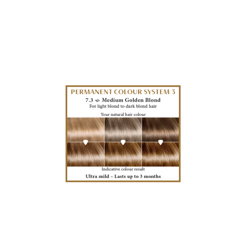 Hairwonder ilgalaikiai plaukų dažai su 9 ekologiškais augaliniais ekstraktais, spalva vidutinė blondinė aukso atspavio 7.3