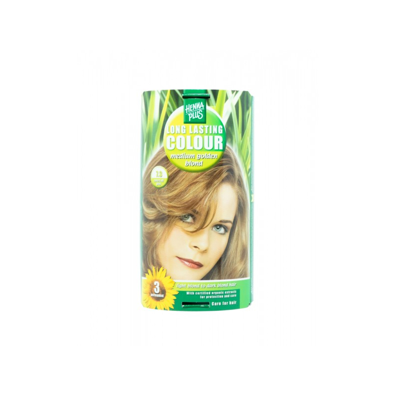 Hennaplus ilgalaikiai plaukų dažai su 9 ekologiškais augaliniais ekstraktais, spalva vidutinė aukso blondinė 7.3