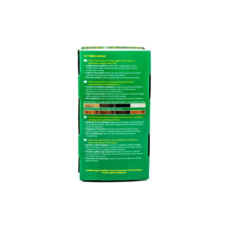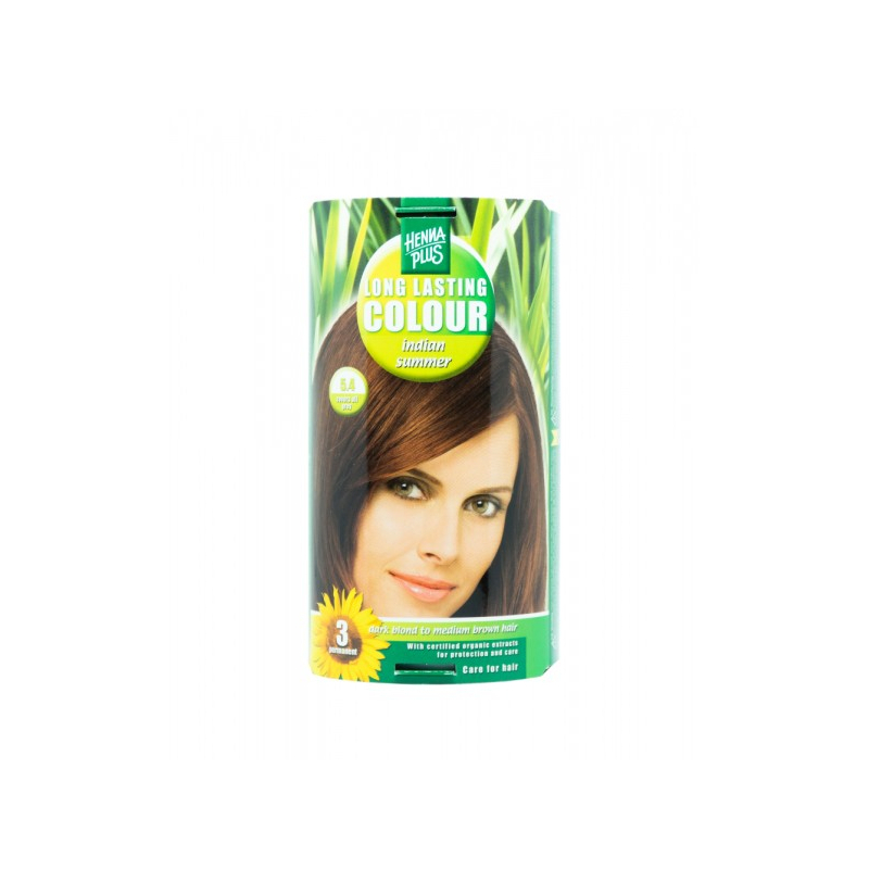 Hennaplus ilgalaikiai plaukų dažai su 9 ekologiškais ekstraktais, spalva Indijos vasara 5.4