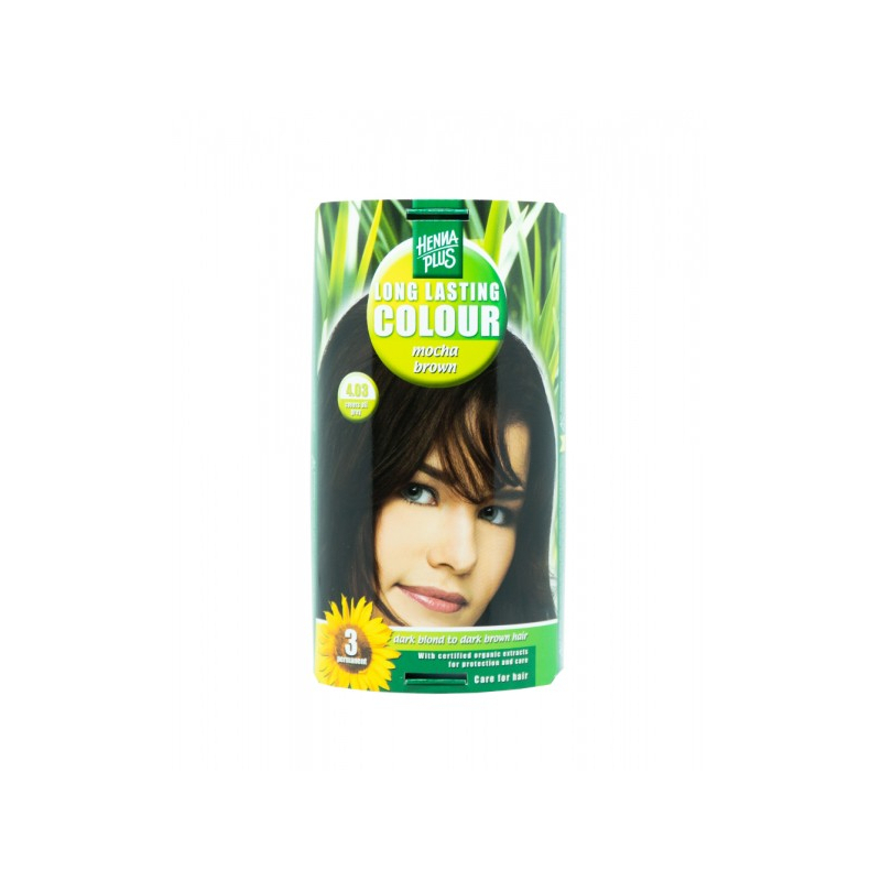 Hennaplus ilgalaikiai plaukų dažai su 9 ekologiškais ekstraktais, spalva kavos ruda 4.03