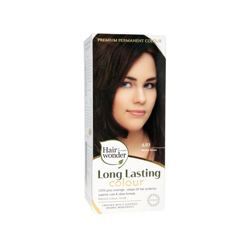 Hairwonder ilgalaikiai plaukų dažai su 9 ekologiškais ekstraktais, spalva kavos ruda 4.03