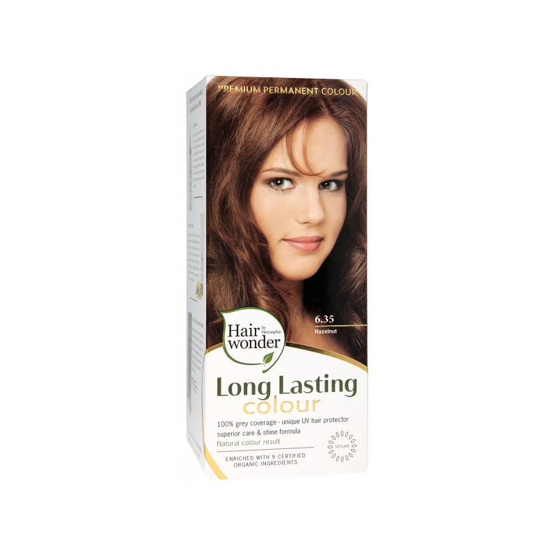 Hairwonder ilgalaikiai plaukų dažai su 9 ekologiškais augaliniais ekstraktais, spalva riešuto 6.35