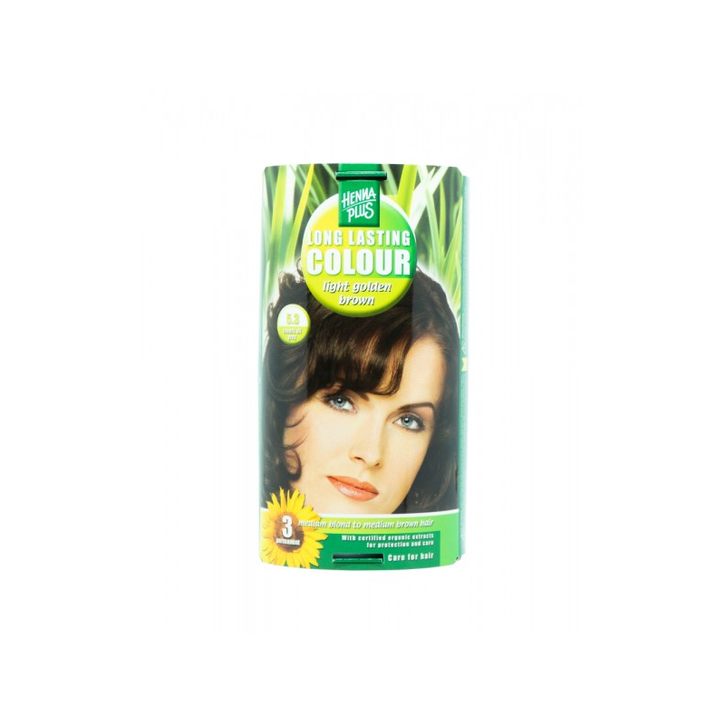 Hennaplus ilgalaikiai plaukų dažai su 9 ekologiškais augaliniais ekstraktais, spalva šviesi aukso ruda 5.3