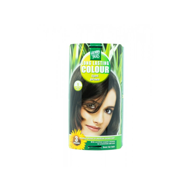 Hennaplus ilgalaikiai plaukų dažai su 9 ekologiškais augaliniais ekstraktais, spalva šviesi ruda 5