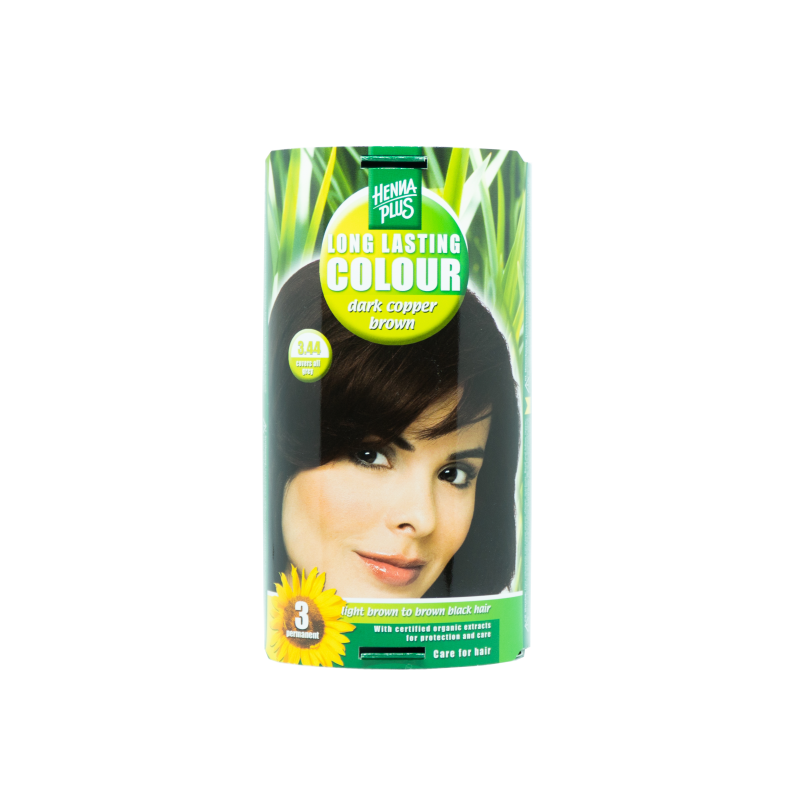 Hennaplus ilgalaikiai plaukų dažai su 9 ekologiškais augaliniais ekstraktais, spalva tamsi vario ruda 3.44