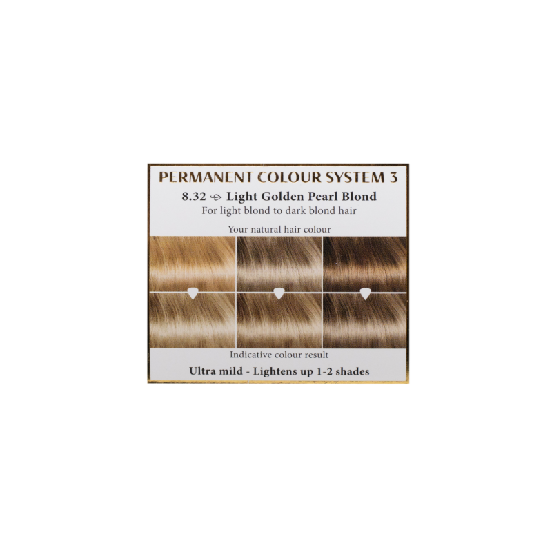 Hairwonder Ilgalaikiai plaukų dažai su 9 ekologiškais ekstraktais, spalva šviesi auksinė perlinio atspalvio blondinė 8.32