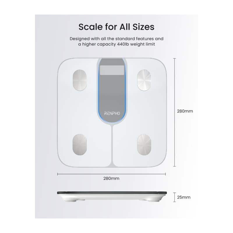 RENPHO Elis 1C išmaniosios kūno sudėties svarstyklės – tai paprastas ir patikimas būdas stebėti ne tik savo svorį, bet ir bendrą kūno būklę. 13 svarbiausių kūno sudėties rodiklių, „Bluetooth“ ryšis ir patogi programėlė padeda sekti sveikatos pokyčius ir siekti savo tikslų visai šeimai.