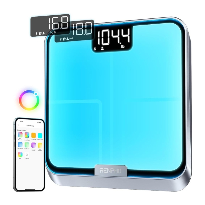 Išbandykite svėrimą nauju būdu su mūsų pažangiomis „Wi-Fi“ ir „Bluetooth“ svarstyklėmis, kurios pasižymi dinamišku RGB apšvietimu. „Renpho Health“ programėlė leidžia aktyvuoti svarbiausias apšvietimo funkcijas: svėrimo priminimus, naktinį režimą, aplinkos apšvietimą ir svorio lygio indikatorių. Šios svarstyklės nėra tik svorio matavimo įrankis – jos tampa jūsų patikimu partneriu sveikatos kelyje.