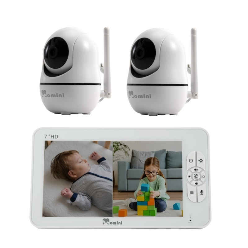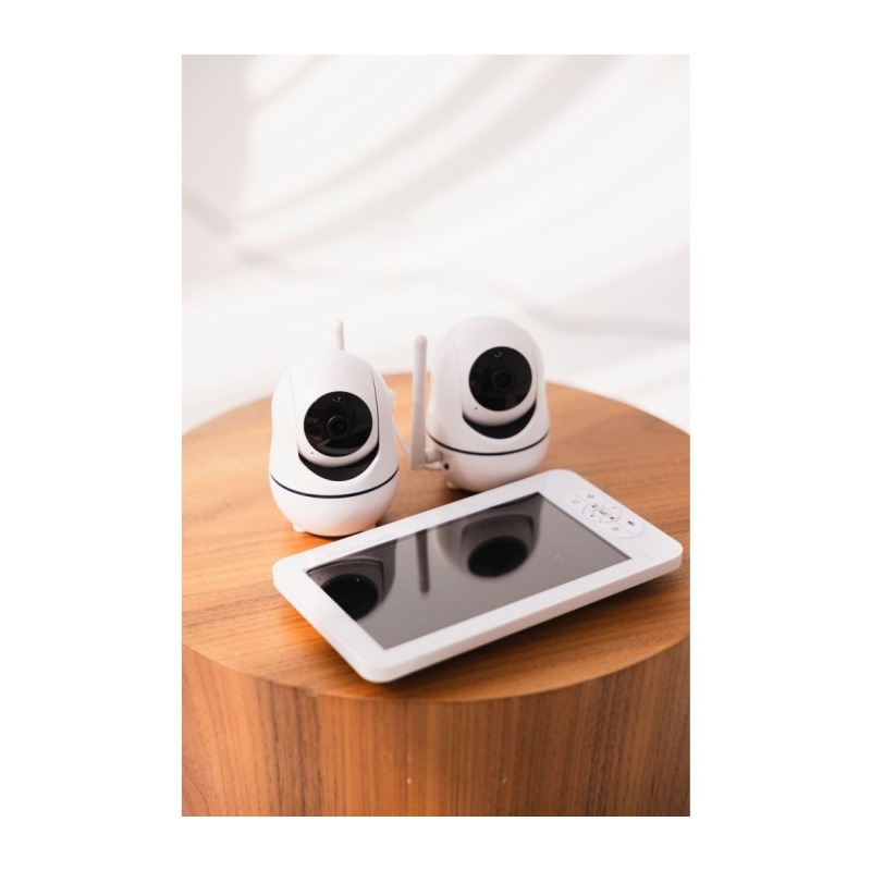 7 colių HD LCD ekranas užtikrina neprilygstamą vaizdo aiškumą. Reguliuojamas garsas ir dvipusė garso komunikacija leidžia ne tik girdėti, kas vyksta kūdikio kambaryje, bet ir bendrauti su vaiku – itin naudinga, kai reikia nuraminti verkiantį mažylį iš kito kambario. Be to, monitorius leidžia vienu metu matyti vaizdą iš dviejų kamerų, taip išplečiant stebėjimo galimybes neprarandant kokybės.