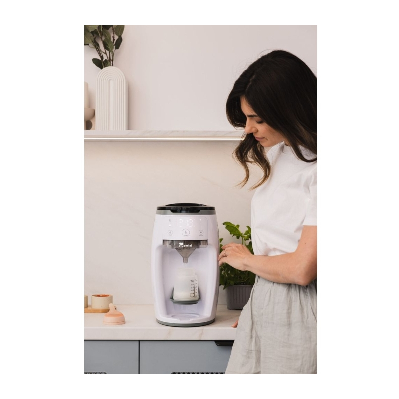Momini Milk Magic – tai kur kas daugiau nei aparatas pieno mišinukui ruošti. Kompaktiškas prietaisas lengvai paruošia pieną, kakavą ar net tirpią kavą, todėl nereikia kelių skirtingų įrenginių. Jo universalumas padeda palaikyti tvarką virtuvėje ir didina jos funkcionalumą. Intuityvi valdymo sistema leidžia patogiai ir greitai naudotis prietaisu, tad tai itin praktiškas sprendimas užimtiems tėvams.