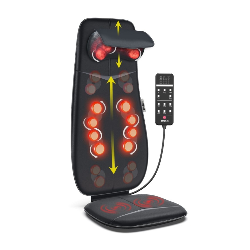 Patirkite aukščiausio lygio atsipalaidavimą su visos nugaros ir kaklo masažine sėdyne Renpho. Šis nešiojamas masažuoklis, sujungiantis įvairias masažo technikas, šildymo funkciją ir ergonomišką dizainą, padeda efektyviai mažinti stresą, raumenų įtampą bei nuovargį ir leidžia mėgautis SPA tipo atsipalaidavimu namų aplinkoje.
