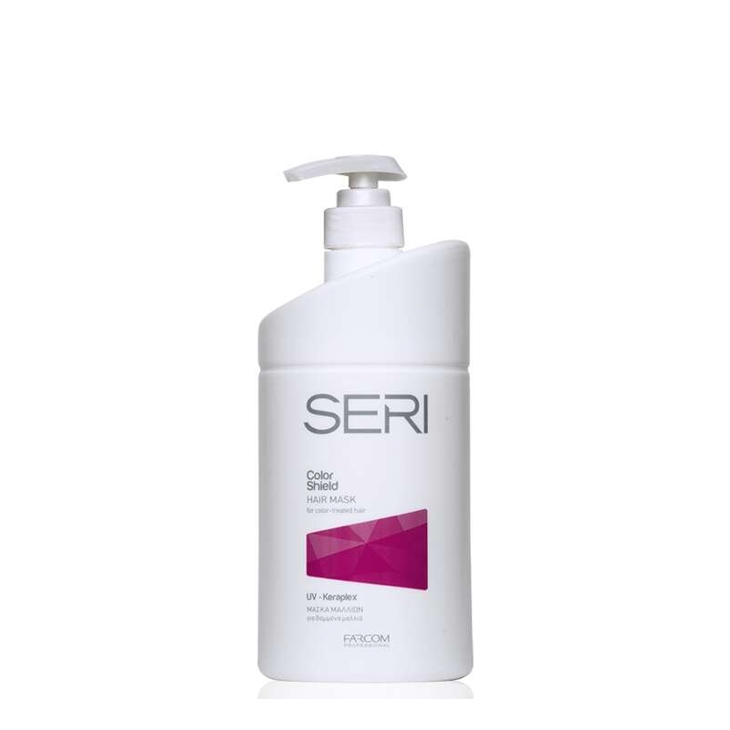 SERI Color Shield kaukė dažytiems plaukams, papildyta daugybe giliai drėkinančių ingredientų efektyviai atkuria dažytus ir spindesį praradusius plaukus. Šios kaukės sudėtyje esantys naujoviški ingredientai – amino rūgštys, Monoi de tahiti aliejus ir keratinas padeda atkurti sausų ir pažeistų plaukų struktūrą, skatina plaukų augimą, apsaugo nuo slinkimo, maitina galvos odą. Monoi aliejuje gausu antioksidantų, vitamino E, lauro rūgšties, šis aliejus stabdo laisvųjų radikalų susidarymą, suminkština bei išlygina plauko sieneles. O sudėtyje esantis keratinas tai plauko struktūrą sudarantis baltymas, gebantis prasiskverbti pro kutikulę ir pasiekti vidinius plauko sluoksnius. Dėl to greitai ir pilnai atstatomos pažeistos plauko zonos. Keratinas suteikia plaukams blizgesio, juos stiprina ir daro elastingesnius. Keratinas idealiai tinka plaukų atstatymui po dažymo procedūros. Sudėtyje esantis UV filtras ypač reikalingas šiltuoju metų laiku. Tai medžiaga filtruojanti tam tikrą spinduliuotę, skirtą apsaugoti plaukus nuo žalingų saulės spindulių poveikio. Ši švelnios tekstūros kaukė, specialiai sukurta dažytiems plaukams, suteikia intensyvią priežiūrą ir ryškia spalvą. Kaukė idealiai tinka ir sausų, skilinėjančių plaukų galiukų priežiūrai. Naudojant šią kaukę plaukus maksimaliai drėkinsite, atgaivinsite ir saugosite spalvą nuo blukimo. Plaukai taps minkšti lyg šilkiniai.