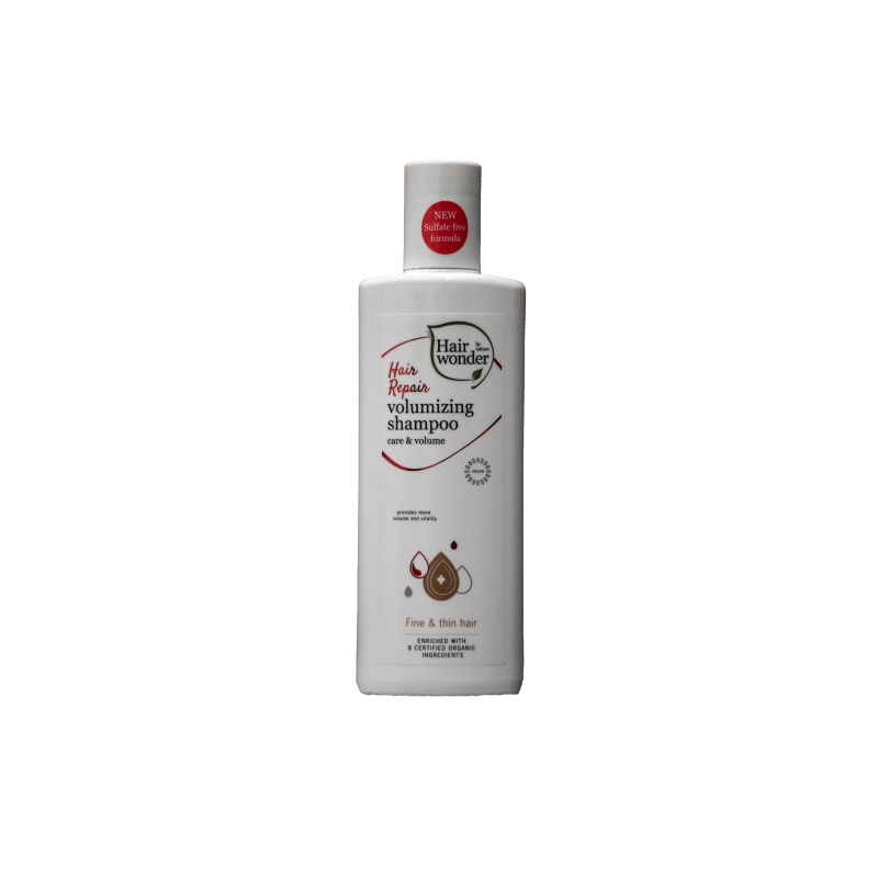 Hairwonder – tai biologiškai aktyvių medžiagų derinys, sukurtas plaukų maitinimui, drėkinimui, stiprinimui ir apsaugai. Šis prekės ženklas jungia gamtą, mokslą ir inovacijas, kad Jūsų plaukai būtų stiprūs, sveiki ir gražūs. Hairwonder produktai yra saugūs ir veiksmingi, jų sudėtyje – ne mažiau kaip 8 kruopščiai atrinkti ekologiški augaliniai ekstraktai, natūraliai turintys vitaminų ir mineralų. Šios veikliosios medžiagos pasižymi vertingomis savybėmis, atkeliavusiomis tiesiai iš gamtos. Produktų patikimumą ir kokybę patvirtina gamintojui suteiktas ISO 22716 aukščiausios kokybės standartas, kuriuo gali pasigirti tik nedaugelis kosmetikos gamintojų. Hairwonder ypač rekomenduojami, jei plaukai nusilpę, lūžinėja, slenka, veliasi ar atrodo nualinti. Tinka visų tipų plaukams. Reguliariai naudojant, plaukai tampa vešlūs, purūs, šilkinio švelnumo, lengvai iššukuojami, blizgantys ir stiprūs – sveiki ir gražūs kiekvieną dieną.HAIRWONDER Šampūnas Hair Repair Volumizing Švelniai valantis veganinis šampūnas be sulfatų, sukurtas ploniems ir silpniems plaukams. Suteikia daugiau apimties ir gyvybingumo, stiprumo ir natūralaus žvigesio. Praturtintas 8 sertifikuotais ekologiškais augaliniais ekstraktais, fitokeratinu (augaliniu keratinu), pantenoliu (provitaminu B5). SAVYBĖS●Veganinis produktas.●Be sulfatų, be dažiklių.●Švelniai valantis šampūnas, sukurtas ploniems ir silpniems plaukams.●Suteikia didesnę apimtį ir gyvybingumą.●Padeda išvengti plaukų sausumo, pasišiaušimo ir pažeidimų.●Sudėtyje – didelė veikliųjų medžiagų koncentracija.●94 % ingredientų yra natūralios kilmės.●Praturtintas 8 ekologiškais augaliniais ingredientais, fitokeratinu ir provitaminu B5.●Daugiau nei 30 metų – olandiškos kokybės ir patikimumo simbolis. Pažangios formulės, tvarumas ir ISO 22716 kokybės garantija. Be mikroplastiko.TURTINGA SUDĖTIS●Fitokeratinas: sudurtinis žodis, kurio pirmoji dalis fito- (gr. phyto) reiškia sąsają su augalais, t.y. fitokeratinas yra augalinis keratinas, išgautas iš trijų šaltinių - hidrolizuotų kviečių, sojos ir kukurūzų baltymų). Tyrimas (1) įrodė, kad fitokeratinas įsigeria į plaukų odelę ir suformuoja apsauginę plėvelę, kuri gali padėti sulaikyti drėgmę ir išlaikyti jos balansą, gali padėti palaikyti plaukų stiprumą, minkštumą ir suteikti natūralaus žvilgesio.●Pantenolis: plaukų kondicionuojamoji medžiaga, palengvina šukavimą, suteikia plaukams elastingumo, švelnumo ir žvilgesio. (2) Pantenolis padeda išlaikyti plaukų drėgmės balansą ir padeda stiprinti plaukus. (3)●Ekologiškų augalų ekstraktų ir žolelių mišinys: vaistinės melisos, kvapiojo rozmarino, aštrialapių kasijų, žaliosios ir raudonosios arbatos lapų, ženšenio šaknų, paprastojo apynio spurgų, vaistinės ramunės žiedų ekstraktai intensyviai prižiūri plaukus ir galvos odą.(1). Fitokeratino poveikis buvo tiriamas „Arch Cosmetic Ingredients & ideas” atliktame tyrime, siekiant įvertinti fitokeratino poveikį chemiškai paveiktų plaukų atsparumui skilinėti ir jų tamprumui. (Techninė tyrimo informacija, versija 11/07/07v1.5, nuoroda: https://slamutis.lt/PDF/Tyrimas-fitokeratinas_slamutis.lt.pdf).(2). NCV (Nederlandse Cosmetica Vereniging = Nyderlandų Kosmetikos Asociacija). https://www.ncv-cosmetica.nl/cosmetica/samenstelling-en-ingredienten/inci-controle/.(3). Tyrimų duomenimis, šampūnas, kuriame yra 0,5 % pantenolio ir praskiestas vandeniu santykiu 1:10, turėjo drėkinamąjį poveikį - po vieno plovimo drėgmės kiekis plaukuose siekė iki 36,4 µg viename grame plaukų, o po penkių plovimų – iki 115,7 µg/g. Pantenolio įsiskverbimas buvo nustatytas tokiu pačiu būdu – po vieno naudojimo plaukuose buvo aptikta iki 7,5 µg pantenolio/g, o po penkių plovimų – iki 21,5 µg/g. Šie rezultatai patvirtina, kad pantenolis palaipsniui įsiskverbia į plauko struktūrą, o pakartotinis naudojimas leidžia jam kauptis plauke. Dėl to ilgainiui gerėja plauko būklė, elastingumas ir atsparumas pažeidimams, nes pantenolis veikia kaip drėgmę išlaikantis ir plaukus stiprinantis komponentas. Didelis vandens kiekis taip pat padeda apsaugoti plaukus nuo žalos, atsirandančios dėl šukavimo, džiovinimo ar cheminio dažymo. (Wagner, Panthenol und Phytantriol in der Kosmetik, 75, 260–267 (1994)).PAPILDOMI PRIVALUMAIPLAUKŲ PRIEŽIŪROS SPECIALISTAS NUO 1985 metų. „Hairwonder“ myli natūraliai sveikus, žvilgančius ir stiprius plaukus. Nuo 1985 m. specializuojamės kurdami produktus, kurie tai padaro įmanoma – priemones, atstatančias, maitinančias ir suteikiančias plaukams natūralaus žvilgesio. Didžiuojamės, kad šiandien mūsų produktai yra pamėgti daugiau nei 35 šalyse, o milijonai žmonių jau patyrė mūsų 100 %-inės olandiškos kokybės rezultatus.ISO STANDARTAS. „Hairwonder“ yra sertifikuota pagal aukščiausios kokybės standartą ISO 22716. Šis standartas apima visapusišką kosmetikos gaminio kokybės ir saugos vadybą nuo gamybos pradžios, t.y. ekologiškų augalų auginimo, gavybos, gabenimo, sandėliavimo iki galutinio produkto išsiuntimo vartotojui.NUOLATINĖS INOVACIJOS, ĮKVĖPTOS GAMTOS. „Hairwonder“ produktams naudojame aukščiausios kokybės ingredientus, vertingus ekstraktus ir pažangius gamybos metodus. „Hairwonder“ yra pirmasis ir vienintelis plaukų priežiūros prekės ženklas, kurio visi produktai praturtinti bent 8 sertifikuotais ekologiškais ingredientais. Šie ingredientai auginami nenaudojant pesticidų.BE SULFATŲ. Sulfatai yra agresyvūs valikliai, galintys pašalinti natūralius riebalus iš plaukų ir galvos odos. Visus sulfatus pakeitėme augaliniu švelniu valikliu, gautu iš kokosų aliejaus: Sodium Lauroyl Methyl Izetionate.BE MIKROPLASTIKO. Mikroplastikai yra mažos plastiko dalelės, kurios tampa vis didesne problema. Naudojimo metu, kartu su vandeni