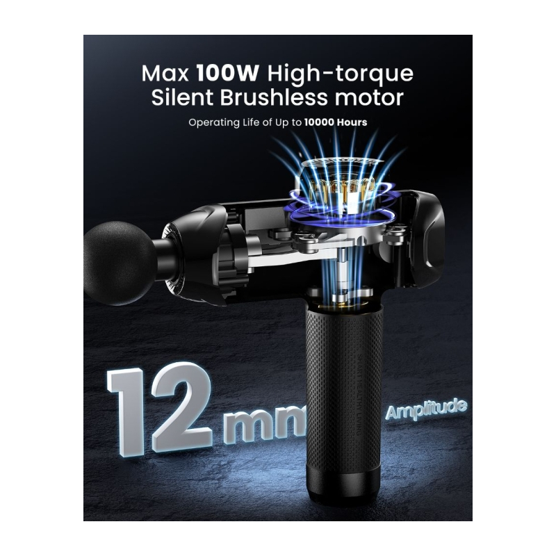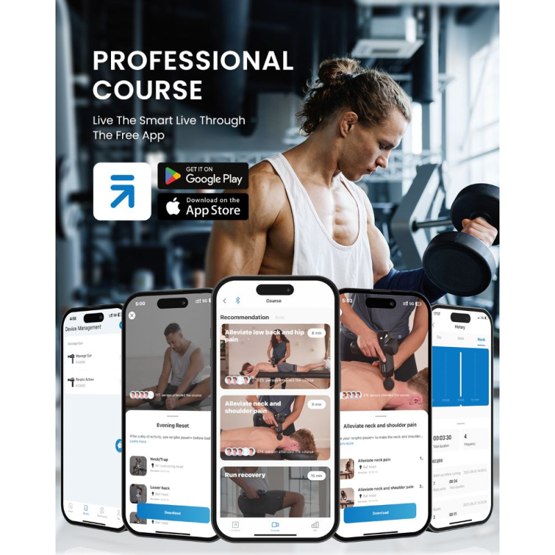 Išmanus smūginis masažuoklis suteikia gilų raumenų atpalaidavimą tiksliai ir patogiai. Su 6 specializuotomis masažo galvutėmis ir 6 reguliuojamais greičio lygiais jis tiksliai masažuoja skirtingas raumenų grupes. Puikiai tinka po treniruočių arba kasdieniam raumenų atpalaidavimui.