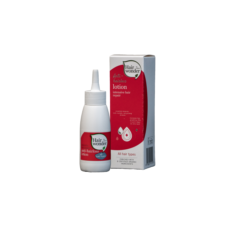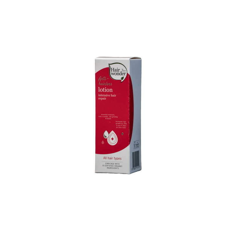 Hairwonder – tai biologiškai aktyvių medžiagų derinys, sukurtas plaukų maitinimui, drėkinimui, stiprinimui ir apsaugai. Šis prekės ženklas jungia gamtą, mokslą ir inovacijas, kad Jūsų plaukai būtų stiprūs, sveiki ir gražūs. Hairwonder produktai yra saugūs ir veiksmingi, jų sudėtyje – ne mažiau kaip 8 kruopščiai atrinkti ekologiški augaliniai ekstraktai, natūraliai turintys vitaminų ir mineralų. Šios veikliosios medžiagos pasižymi vertingomis savybėmis, atkeliavusiomis tiesiai iš gamtos. Produktų patikimumą ir kokybę patvirtina gamintojui suteiktas ISO 22716 aukščiausios kokybės standartas, kuriuo gali pasigirti tik nedaugelis kosmetikos gamintojų. Hairwonder ypač rekomenduojami, jei plaukai nusilpę, lūžinėja, slenka, veliasi ar atrodo nualinti. Tinka visų tipų plaukams. Reguliariai naudojant, plaukai tampa vešlūs, purūs, šilkinio švelnumo, lengvai iššukuojami, blizgantys ir stiprūs – sveiki ir gražūs kiekvieną dieną.HAIRWONDER losjonas Intensive Hair Repair Anti-hairloss, 75 ml Aktyvinamasis losjonas, kuris padeda skatinti plaukų augimą iki 25 % vos per 4 dienas (in vitro testas) ir mažinti plaukų slinkimą. Moksliniais tyrimais patvirtintas veiksmingumas! Losjonas padeda stiprinti plaukus ir stimuliuoti galvos odą, suteikia plaukams apimties, žvilgesio ir gyvybingumo. Praturtintas 8 sertifikuotais ekologiškais ingredientais, fitokeratinu, provitaminu B5, Korėjos raudonuoju ženšeniu, biotinu, kofeinu, kalnų krištolo kristalais, inulinu, bioaktyvių magnio, cinko, vario, geležies ir silicio mineralų kompleksais.SAVYBĖS●Aktyvinamasis losjonas, padedantis skatinti plaukų augimą.●In vitro testas parodė – plaukų augimas gali padidėti iki 25 % vos per 4 dienas. Tyrimas atliktas modernioje biologinių tyrimų laboratorijoje „BIOalternatives“, 86160 Gencay, Prancūzijoje.●Padeda mažinti plaukų slinkimą.●94 % ingredientų – natūralios kilmės.●Tinka visų tipų plaukams.●Padeda stiprinti plaukus ir stimuliuoti galvos odą.●Suteikia plaukams apimties, tvirtumo ir žvilgesio.●Geriausiems rezultatams naudokite kartu su Hairwonder Intensive Anti-hairloss šampūnu.●Sudėtyje didelė aktyviųjų medžiagų koncentracija.●Praturtintas 8 ekologiškais ingredientais, fitokeratinu, provitaminu B5, Korėjos raudonuoju ženšeniu, biotinu, kofeinu, kalnų krištolo kristalais, inulinu.●Daugiau nei 30 metų – olandiškos kokybės ir patikimumo simbolis. Pažangios formulės, tvarumas ir ISO 22716 kokybės garantija. Be mikroplastiko.TURTINGA SUDĖTIS●Korėjos raudonasis ženšenis: ženšenis plačiai tiriamas dėl galimo plaukų folikulų aktyvavimo, poveikio plaukų augimui ir potencialo mažinti plaukų iškritimą. (1)●Biotinas: padeda palaikyti normalią plaukų ir odos būklę.●Bioaktyvūs magnio, cinko, vario, geležies ir silicio mineralų kompleksai, gauti fermentuojant mieles (Saccharomyces) su šiais mineralais.Varis padeda palaikyti normalią plaukų pigmentaciją, o cinkas – normalią plaukų būklę. Geležies ir silicio kompleksai veikia kaip plaukus kondicionuojančios medžiagos, padeda pritraukti drėgmę ir išlaikyti jos balansą. (2)●Fitokeratinas: sudurtinis žodis, kurio pirmoji dalis fito- (gr. phyto) reiškia sąsają su augalais, t.y. fitokeratinas yra augalinis keratinas, išgautas iš trijų šaltinių - hidrolizuotų kviečių, sojos ir kukurūzų baltymų). Tyrimas (2) įrodė, kad fitokeratinas įsigeria į plaukų odelę ir suformuoja apsauginę plėvelę, kuri gali padėti sulaikyti drėgmę ir išlaikyti jos balansą, gali padėti palaikyti plaukų stiprumą, minkštumą ir suteikti natūralaus žvilgesio.●Pantenolis: plaukų kondicionuojamoji medžiaga, palengvina šukavimą, suteikia plaukams elastingumo, švelnumo ir žvilgesio, taip pat daugiau apimties bei gyvybingumo. (3) Pantenolis pasižymi stipriu drėkinamuoju poveikiu, padedančiu išlaikyti plaukų drėgmės balansą ir mažinti jų pažeidžiamumą. (4) (5)●Kofeinas: padeda pritraukti drėgmę. (3)●Inulinas: Išgautas iš cikorijos, tai prebiotikas, galintis padėti išlaikyti galvos odą mikrobiotos pusiausvyrą.●Kalnų krištolo kristalai: natūraliam plaukų žvilgesiui.●Ekologiškų augalų ekstraktų ir žolelių mišinys: vaistinės melisos, kvapiojo rozmarino, aštrialapių kasijų, žaliosios ir raudonosios arbatos lapų, ženšenio šaknų, paprastojo apynio spurgų, vaistinės ramunės žiedų ekstraktai intensyviai prižiūri plaukus ir galvos odą.(1). Bu Young Choi „Hair-Growth Potential of Ginseng and Its Major Metabolites: A Review on Its Molecular Mechanisms“. Ženšenio poveikis buvo tiriamas laboratorinėmis sąlygomis vitro ir vivo sąlygomis, analizuojant ženšenio ir jo pagrindinių metabolitų potencialą skatinti plaukų augimą bei užkirsti kelią plaukų slinkimui, ypač per molekulinius mechanizmus. („International Journal of Molecular Sciences“. Int J Mol Sci. 19(9):2703. doi: 10.3390/ijms19092703. PMID: 30208587; PMCID: PMC6163201).(2). Fitokeratino poveikis buvo tiriamas „Arch Cosmetic Ingredients & ideas” atliktame tyrime, siekiant įvertinti fitokeratino poveikį chemiškai paveiktų plaukų atsparumui skilinėti ir jų tamprumui. (Techninė tyrimo informacija, versija 11/07/07v1.5, nuoroda: https://slamutis.lt/PDF/Tyrimas-fitokeratinas_slamutis.lt.pdf).(3). NCV (Nederlandse Cosmetica Vereniging = Nyderlandų Kosmetikos Asociacija). https://www.ncv-cosmetica.nl/cosmetica/samenstelling-en-ingredienten/inci-controle/.(4). Tyrimų duomenimis, šampūnas, kuriame yra 0,5 % pantenolio ir praskiestas vandeniu santykiu 1:10, turėjo drėkinamąjį poveikį - po vieno plovimo drėgmės kiekis plaukuose siekė iki 36,4 µg viename grame plaukų, o po penkių plovimų – iki 115,7 µg/g. Pantenolio įsiskverbimas buvo nustatytas tokiu pačiu būdu – po vieno naudojimo plaukuose buvo aptikta iki 7,5 µg pantenolio/g, o po penkių plovim