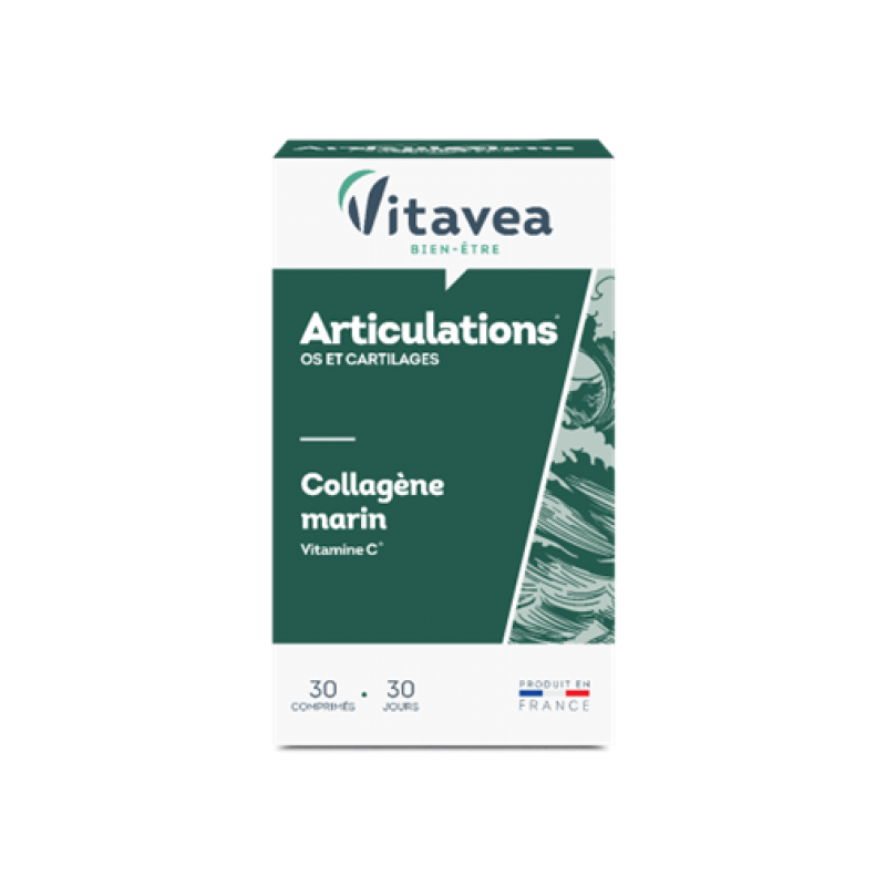 Vitavea Articulations sąnariams, kaulams, kremzlėmsSĄNARIAI, KAULAI IR KREMZLĖS Sąnarių, kaulų ir kremzlių funkcijai. Padeda išlaikyti sąnarių tvirtumą. Praturtinta I ir II tipo jūriniu kolagenu, šis maisto papildas padeda palaikyti sveiką kremzlę ir kaulus. Formulė sujungia jūrinį kolageną, žinomą dėl veiksmingumo sąnarių elastingumui ir komfortui, su vitaminu C, kuris padeda palaikyti kolageno, reikalingo normaliai kraujagyslių, kaulų, kremzlių funkcijoms, susidarymą.PRODUKTO PRIVALUMAI●Esminis veikliųjų medžiagų duetas sąnarių elastingumui ir komfortui.●I ir II tipo jūrinis kolagenas.●Formulėje 100 % rekomenduojamos vitamino C paros normos, reikalingos kolageno sintezei.●Pagaminta Prancūzijoje, Vitavea laboratorijoje Vandėja regione, laikantis geros gamybos praktikos (GGP) ir kokybės (ANSM - Nacionalinės vaistų ir sveikatos produktų saugos agentūros) procesų. MAISTINĖS MEDŽIAGOS●Vitaminas C padeda palaikyti kolageno, kuris reikalingas normaliai kraujagyslių, kaulų, kremzlių, dantenų, odos, dantų funkcijoms, susidarymą. Padeda palaikyti normalią imuninės sistemos veiklą, padeda apsaugoti ląsteles nuo oksidacinės pažaidos, padeda palaikyti normalią nervų sistemos veiklą ir psihologinę funkciją. ●Kolagenas – tai gausiausias žmogaus organizmo baltymas, sudarantis odą, sausgysles, raiščius, kaulus ir kitus jungiamuosius audinius. I tipo kolagenas sudaro apie 90 % viso organizme esančio kolageno ir yra reikalingas odos, sausgyslių, kaulų, raiščių bei jungiamojo audinio struktūros palaikymui. II tipo kolagenas daugiausiai randamas kremzlėse, todėl yra tiesiogiai susijęs su sąnarių lankstumu, judrumu ir kremzlės struktūros palaikymu. Šių kolageno tipų derinys papildo vienas kitą ir padeda palaikyti natūralią sąnarių, kaulų ir jungiamojo audinio funkciją.1-oje tabletėje●Žuvų kolageno hidrolizatas 300 mg, kuriuose kolageno baltymų 270 mg●Vitaminas C: 80 mg (100 % RMV*)*RMV – referencinė maistinė vertėMaisto papildas. 30 tablečių. Grynasis kiekis 19,9 g.Vartojimas: 1 tabletė per dieną, vakare, valgymo metu, užgeriant stikline vandens.Pakuotės kokybės ir aplinkosaugos charakteristikos: Kapsulės yra tamsaus stiklo buteliukuose. Stiklas neturi sąveikos su aplinka, todėl į gaminį nepatenka oras, drėgmė, dulkės ir kitos medžiagos, galinčios pakenkti produkto kokybei. Tamsaus stiklo buteliukuose laikomi produktai išlieka aukštesnės kokybės ir stabilūs, yra apsaugomi nuo neigiamo šviesos poveikio ir priešlaikinės oksidacijos.Perdirbtos medžiagos naudojimas pakuotėje: 0 %Pavojingos medžiagos pakuotėje: nėraProdukte esančios pavojingos medžiagos: nėraKompostuojama pakuotė: ne (stiklo buteliukas)Pakuotė: dažniausiai perdirbama (popierinė dėžutė)Gamintojas: Vitavea, Parc d'activité Sud Loire - 85612 Montaigu Cedex, PrancūzijGavėjas :