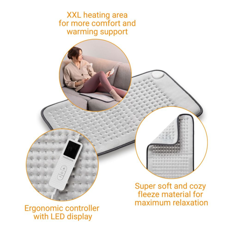 Šildymo pagalvėlė Medisana HP 700 XXL – tai nepakeičiamas šildymo pagalbininkas jūsų namuose. Ji idealiai tinka nugaros, pilvo ir pečių sričių atpalaidavimui bei šildymui. Dėl didelio šildymo ploto pagalvėlė yra universali, greitai įkaista ir yra patogiai valdoma LED valdikliu. HP 700 XXL – tai praktiškas šildymo įrenginys naudojimui namuose ar biure.