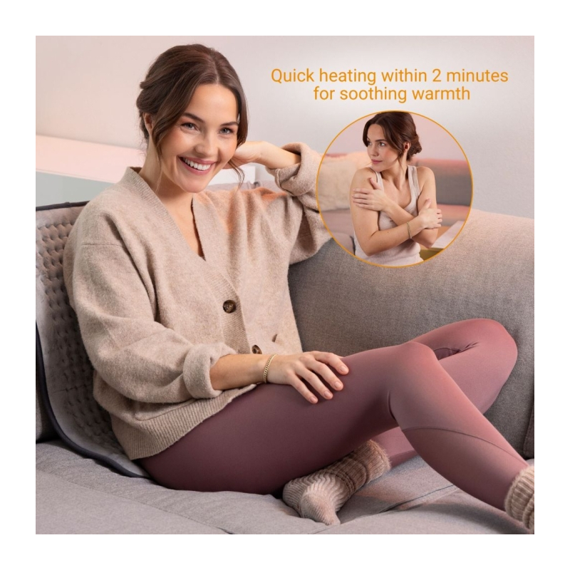 HP 700 XXL žavi ne tik savo funkcionalumu, bet ir itin minkšta "fleece" medžiaga. Ji maloniai priglunda prie odos ir suteikia maksimalų atsipalaidavimą naudojimo metu. Dėl nuimamo valdiklio šildymo pagalvėlę galima skalbti skalbimo mašinoje 30 °C temperatūroje – tai idealus variantas kasdieniam higieniškam naudojimui. Medžiaga atitinka OEKO-TEX® Standard 100 reikalavimus, todėl tinka net jautriai odai. Ši šildymo pagalvėlė sujungia odai draugiškas medžiagas ir efektyvią šilumą – puikus pasirinkimas atsipalaidavimui namuose.