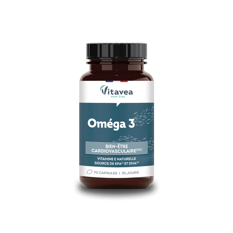 VITAVEA OMEGA 3 su natūralios kilmės vitaminu ESvarbus duetas širdies ir kraujagyslių sistemos gerovei: Omega 3 ir natūralus vitaminas E. Mažose, lengvai nuryjamose kapsulėse.Paženklinta "FRIENDFISH“ ("JŪROS DRAUGO") sertifikatu. Tai garantuoja 3 pagrindinius gamintojo įsipareigojimus: 1. aukščiausios kokybės aliejus.2. išgaunamas iš smulkių laukinių žuvų, laikantis tvarios ir atsakingos žvejybos principų.3. aliejus yra pakuotėse, kurios garantuoja optimalų omega 3 rūgščių išsaugojimą - kapsulės yra tamsaus stiklo buteliukuose. Stiklas neturi sąveikos su aplinka, todėl į gaminį nepatenka oras, drėgmė, dulkės ir kitos medžiagos, galinčios pakenkti produkto kokybei. Tamsaus stiklo buteliukuose laikomi produktai išlieka aukštesnės kokybės ir stabilūs, yra apsaugomi nuo neigiamo šviesos poveikio ir priešlaikinės oksidacijos. AKTYVIOSIOS MEDŽIAGOS●EPR ir DHR padeda palaikyti normalią širdies veiklą**. ●DHR padeda palaikyti normalią smegenų funkciją, išsaugoti normalų regėjimą*.●Vitaminas E padeda apsaugoti ląsteles nuo oksidacinės pažaidos.**teigiamas poveikis pasireiškia per parą suvartojant 250 mg DHR ir EPR.*teigiamas poveikis pasireiškia per parą suvartojant 250 mg DHR.2-ose kapsulėse: ● Žuvų taukai 729 mg, kuriuose Omega 3 rūgštys 386,4 mg, kuriose : EPR 211,4 mg, DHR 138,6 mg ; ●Vitaminas E 10 mg α-TE (83,4% RMV*)RMV*- referencinė maistinė vertė.Maisto papildas. 70 kapsulių. Grynasis kiekis 39 g. Gaminio informacija, susijusi su produkto kokybe ir aplinkosaugos savybėmis: Perdirbtos medžiagos procentinė dalis pakuotėje: gaminyje nėra perdirbtų medžiagų.Pavojingų medžiagų buvimas pakuotėje: nėra. Pavojingos medžiagos buvimas gaminyje: nėra. Pakuotės perdirbamumas: perdirbama. Gamintojas: Vitavea - Laboratoires Yves Ponroy, Parc d'activité Sud Loire - 85612 Montaigu Cedex – PrancūzijGavėjas :
