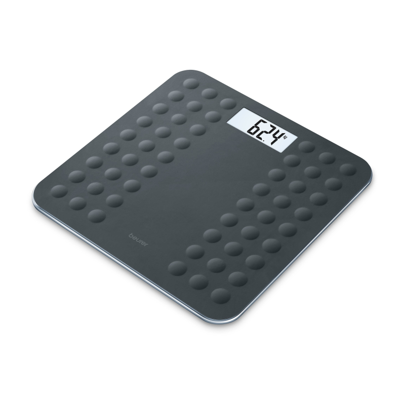 Išskirtinio dizaino stiklinės svarstyklės padengtos neslidžia guma.