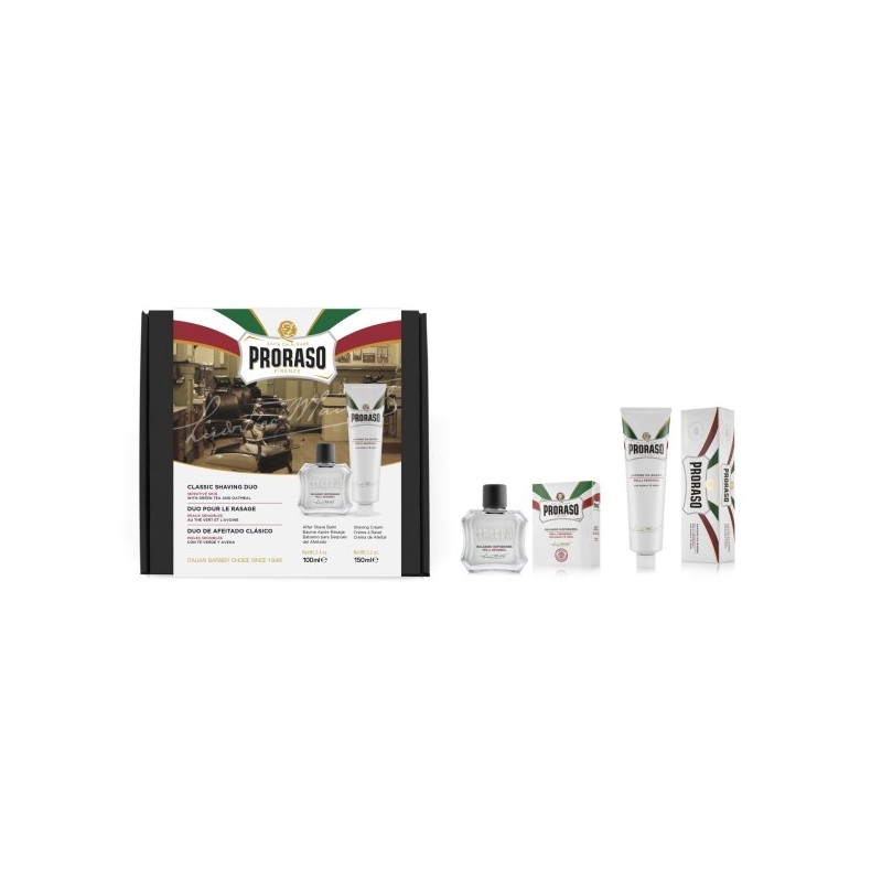 Rinkinį sudaro:Raminantis skutimosi kremas jautriai odai, 150ml - Šio jautriai odai skirto skutimosi kremo sudėtis praturtinta žaliąja arbata ir avižų ekstraktu. Šie ingredientai aprūpina veido odą reikalingais vitaminais, pasižymi antioksidacinėmis savybėmis. Kremas leis sklandžiai nusiskusti, suteiks malonų sudrėkintos odos pojūtį. Kremas apsaugo odą nuo sudirgimo po skutimosi, pasižymi švelniu ir maloniu organišku aromatu.Jautrios odos balzamas po skutimosi, 100ml - Raminantis , minkštinantis ir drėkinantis kremas, suteikia reikalingą apsaugą po skutimosi sudirgintai odai. Avižų&&ekstraktas&minkština odą,gerina Ph,&žalioji arbata yra&natūralus antioksidantas, antibakterinis čiobrelio&ekstraktas apsaugo nuo sudirgimų.KAIP NAUDOTIS:Skutimosi kremą galite naudoti tiek rankomis, tiek skutimosi šepetėliu. Padenkite odos plotą, kurį norite skusti, ir mėgaukitės nepriekaištingu skutimusi.&Balzamą paskleiskite ant veido ir masažuodami padėkite įsigerti į odą.Gavėjas :