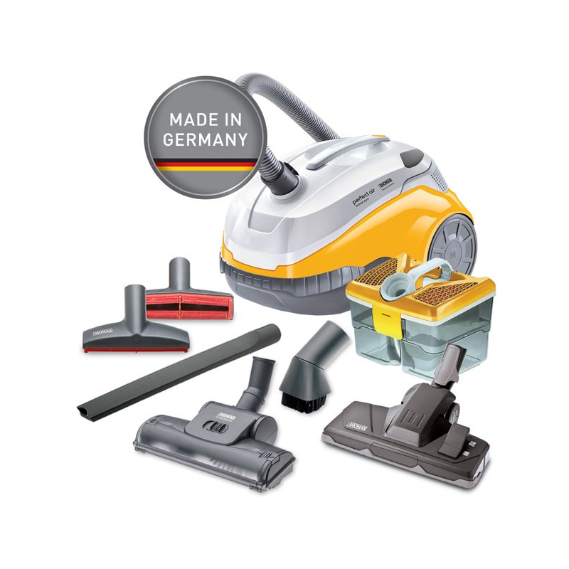 Thomas išskirtinis gaminys, kuris atskleidžia neregėtas galimybes kasdieniniame dulkių valyme. Tai puikus, aukštos kokybės dulkių siurblys, aprūpintas pirmaujančiomis technologijomis, kuris palengvina ir pagreitina įvairių paviršių valymą. Valant sausu būdu, jis higieniškai surenka sausas dulkes, nes dulkės renkamos į vandens filtrą. Dulkių siurblys - patikimas nedidelio vandens kiekio surinkėjas. Jūs įsitikinsite labai aukšta jo kokybe. Thomas yra skirtas skysčių surinkimui, sausam siurbimui, naudojant vandens filtro sistemą. Thomas dulkių siurblys yra labai populiarus Europoje. Labai galingas, siurbiant net 99,99% dulkių lieka konteineryje. Namai lieka švarūs, o oras juose gaivus, ir nelieka jokio pašalinio kvapo. Šis siurblys labai tinka kas turi namuose augintinių. Plaunamas HEPA filtras su laiku nepraranda savo savybių ir kokybiškai tarnauja ilgus metus, filtrui užsiteršus užtenka jį pakišti po vandens srove, ir vėl jis kaip naujas. Thomas – kokybiškas plaunantis dulkių siurblys, kuris tarnaus ilgiau, nei jam suteikiama dviejų metų garantija. Kadangi esame oficialūs Thomas atstovai Lietuvoje, garantuojame pilną komplektaciją, garantinį ir pogarantinį servisą. Pas mus visada įsigysite detalių, kurias pastoviai turime savo sandėlyje.
