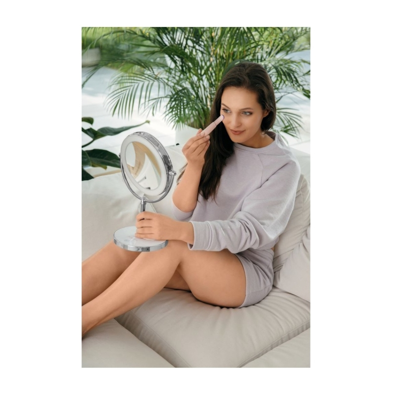 360 laipsnių reguliavimo galimybė atveria neribotas naudojimo galimybes. Galėsite reguliuoti veidrodį bet kokiu kampu ir padėtimi, taip sukurdami idealias sąlygas visoms kosmetinėms veikloms. Paprastas įkrovimas per USB-C jungtį leidžia naudotis veidrodžiu be pertraukų, todėl jis tampa nepakeičiamu kasdienės grožio rutinos palydovu.