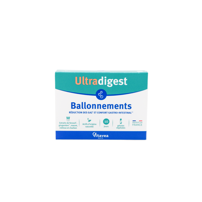 VITAVEA Ultradigest Ballonnements nuo pilvo pūtimo Novatoriškas maisto papildas, specialiai sukurtas susiduriantiems su virškinimo trakto diskomfortu, ypač pilvo pūtimu. Pagaminta iš kruopščiai atrinktų ir vienas kito poveikį papildančių natūralių ingredientų, pripažintų dėl teigiamo poveikio virškinimui ir žarnynui. ●Sinerginis natūralių sudedamųjų dalių poveikis.●Formulė sukurta mikromitybos ekspertų.●Be glitimo, be laktozės, be cukraus ir be želatinos. Be dirbtinių skonių ir dažiklių.●Pagaminta Prancūzijoje, Vitavea laboratorijoje Vandėja regione, laikantis geros gamybos praktikos (GGP) ir kokybės (ANSM - Nacionalinės vaistų ir sveikatos produktų saugos agentūros) procesų. MAISTINĖS MEDŽIAGOS●Paprastasis pankolis per amžius buvo plačiai naudojamas dėl savo karminatyvinio poveikio (žodis carminative kilęs iš lotynų kalbos žodžio „carminare“, kuris reiškia „išvalyti“ arba „pašalinti“. Šis terminas buvo naudojamas medicinoje nuo viduramžių laikų, apibūdinant vaistus ir augalinius preparatus, kurie padeda virškinimui, mažina pilvo pūtimą, palengvina žarnyno dujų pašalinimą). Paprastieji pankoliai padeda palaikyti normalias virškinimo trakto ir šalinimo funkcijas, palaiko gleivių išsiskyrimą, pasižymi spazmolitiniu poveikiu. Padeda palaikyti normalų skysčių šalinimą iš organizmo ir normalią imuninės sistemos veiklą, padeda apsaugoti ląsteles nuo oksidacinės pažaidos.*●Miškinė dedešva padeda palaikyti normalią virškinimo trakto veiklą, padeda esant vidurių užkietėjimui, padeda palaikyti normalią ryklės ir kvėpavimo takų veiklą.* ●Tikrojo imbiero ekstraktas padeda palaikyti normalią: virškinamojo trakto, imuninės sistemos, širdies veiklą, padeda mažinti diskomforto pojūtį (vėmimas, galvos svaigimas) keliaujant, padeda apsaugoti ląsteles nuo oksidacinės pažaidos. Padeda palaikyti energiją ir gyvybingumą, normalų cukraus kiekį kraujyje.*●Vaistinė melisa padeda atsipalaiduoti, padeda palaikyti normalų miegą, normalią psichologinę būseną, normalų kraujotakos ir liaukų sistemų darbą, padeda apsaugoti ląsteles nuo oksidacinės pažaidos.*●Anglis padeda sumažinti per didelį dujų kaupimąsi pavalgius.** *Teiginys apie sveikatingumą laukia ES patvirtinimo.**Teigiamas poveikis pasireiškia tik tada, kai 1 g aktyvintosios anglies suvartojamas ne mažiau kaip 30 minučių prieš valgį, ir 1 g medžiagos – iš karto pavalgius. 3-ose kapsulėse:●Anglis: 400 mg ●Miškinės dedešvos ekstraktas: 150 mg ●Paprastųjų pankolių ekstraktas: 150 mg ●Vaistinės melisos ekstraktas: 50 mg ●Tikrojo imbiero ekstraktas: 30 mg Maisto papildas. 30 augalinės kilmės kapsulių. Grynasis kiekis 10,2 g Gamintojas: Vitavea, 85612 Montaigu Cedex, PrancūzijGavėjas :